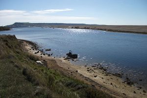 Searching through the large collection of finds from a recent kayak trip up The Fleet Lagoon behind Chesil Beach I came across this strikingly similar, if not identical HP ink cartridge. This area is highlighted on the map of sightings, so it could be one of them. It's location on the landward side of the barrier implies that it had either sailed all the way round the notorious Portland Bill and through the narrow mouth of the lagoon on the tide, or had blown over the top of the colossal Chesil itself.