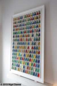 The next repetition work to be published on Saatchiart will be shotgunshellswormington, the second in my series of repetition works, followed by the work I made from the collection of plastic bullet tips found in Marche, Northern Italy a couple of years ago. I have two more new repetition works to make soon. One is of a huge collection of cotton bud sticks from The Royal Victoria Docks, collected over three years whilst working on a large scale decking/beach project for Newnham Council. The other is one I am very excited about as I have never seen all these together, my collection of fishing bait lids, all from Italy, many with different fish designs on them indicating what to attract. I can’t wait to see all the designs and colours together, and it will be a second outing for my wonderful new label printer.