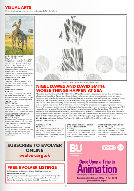The show is entitled 'Worse things Happen At Sea' and runs from the 23rd - 29th June 2021, so do come along if you are in the area, it would make part of a great day out, more details to follow shortly, though for now you can read about our show in the current issue of Evolver Magazine here