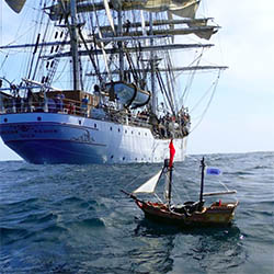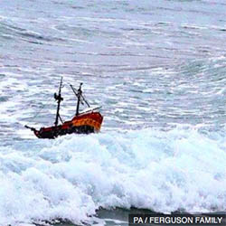 A family in Aberdeenshire fitted out their ship with extra buoyancy additions and a GPS tracker and cast the vessel out into the North Sea. It has since traveled to Denmark, relaunched to Sweden, and whilst on way from Norway, was picked up up by a Norwegian ship and set off again from the West coast of Africa. It is currently heading towards the Caribbean.