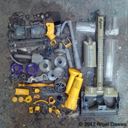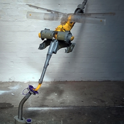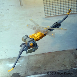 This sculpture follows a theme in my larger works, having been dissembled then reconstructed from all the parts of the original build. Occasionally parts have been cut, punctured or folded, with the occasional fixing, but nothing has been left out.