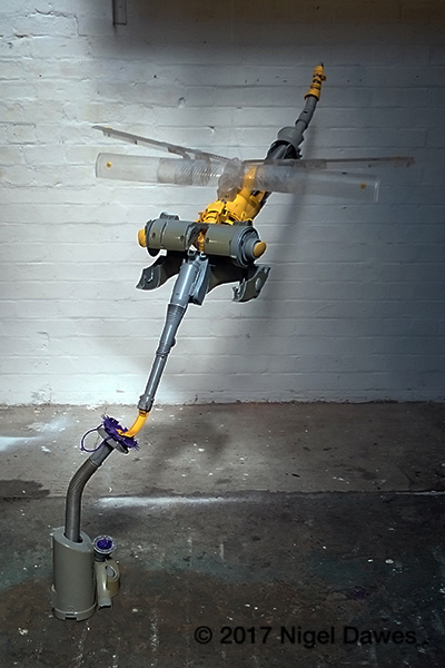 This sculpture follows a theme in my larger works, having been dissembled then reconstructed from all the parts of the original build. Occasionally parts have been cut, punctured or folded, with the occasional fixing, but nothing has been left out.