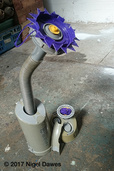The Dyson range is a fascinating piece of industrial design technology with beautiful hidden forms within its casing, and it is exciting to rediscover and use them. This Dyson DC03 was a 1997 model developed from the original upright hoover that revolutionised hoovering in the 1980s.