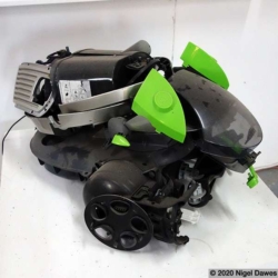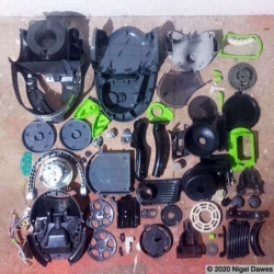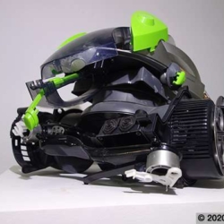 This sculpture, like many of my more successful mutations, didnt have much of a strategy or end game in mind when it was developing. I try to let the shapes take me with them as they reform into something new. There is a fine line taken between robotic machine and organic lifeform, and here I hopefully have kept both interpretations intact. I was thinking about the Borg from Star Trek, the way that the computer network attaches to the victim , forming a new symbiotic relationship where the host and invasive hardware become fused into  a new organism. Well, I didnt get too far along those lines, but there are still distant vacuum based elements visible within this mutated creature, and signs of sentient life within perhaps.