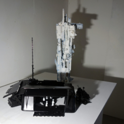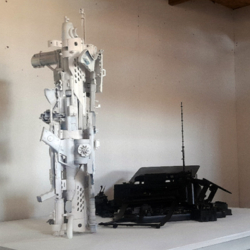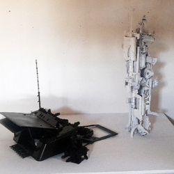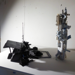 The third work a series concerned with developing an abstract narrative from the forms revealed from the dismantling of the objects selected. Another Canon Pixma inkjet printer has again revealed many objects for reassembling into a sculpture that occupies a space in between abstraction and narrative. Again the desire is to not commit to anything too literal, only to suggest drama. The tower structure is made entirely of a collection of water soakers.