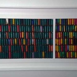 As of 2020 this work has been reframed without glass and the shells fixed with epoxy resin, making for a more tactile feel and showing the true range of colour.