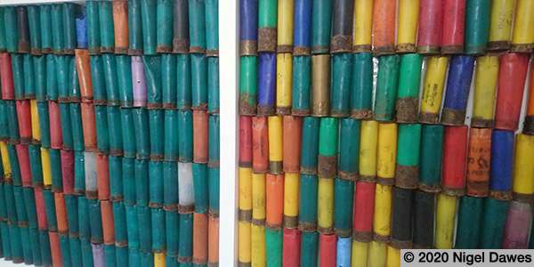 The Wormington shotgun shells were collected on several separate walks, in a smaller wooded area in The Cotswolds. The first walk found a lot of the more common green shells with a scattering of others. The subsequent explorations, undertaken by Cornwall discovered a greater variety of shell types, found much deeper in the wood, often in groups or piles.