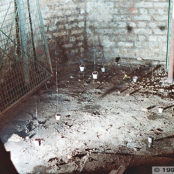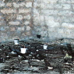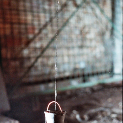 The first of my ventures into installations involving water, a material to which I continue to return. Here, water drops slowly drip into miniature buckets cast in lead with copper handles, suspended on thin copper thread. As the buckets fill, the droplets splash out around the space, slowly flooding the area.The installation has been presented several times, each in a different location, and here, it is documented in a derelict basement.