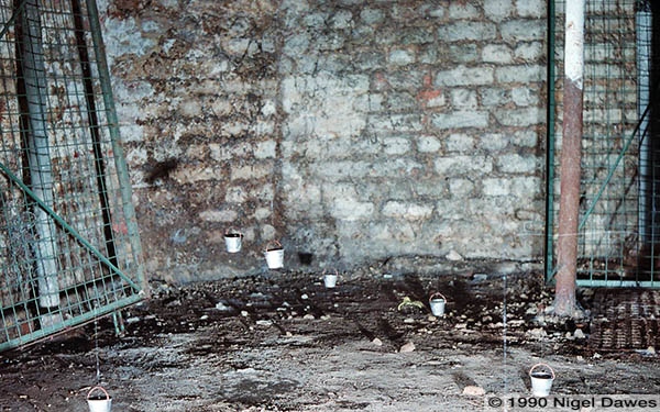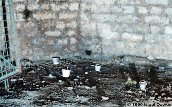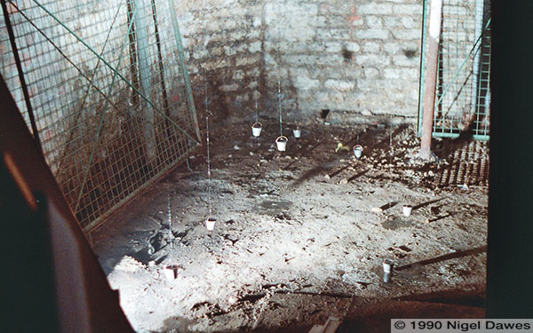 The first of my ventures into installations involving water, a material to which I continue to return. Here, water drops slowly drip into miniature buckets cast in lead with copper handles, suspended on thin copper thread. As the buckets fill, the droplets splash out around the space, slowly flooding the area.The installation has been presented several times, each in a different location, and here, it is documented in a derelict basement.